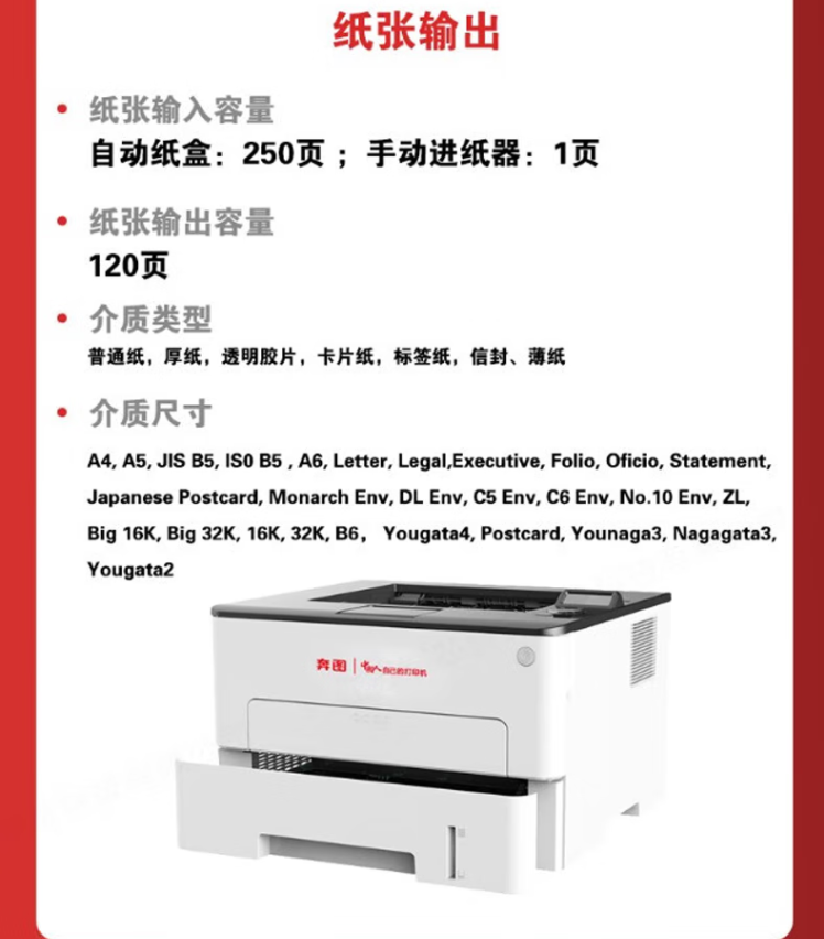 參數(shù) [品牌] 奔圖 [型號] P3305DN [毛重] 7.5KG